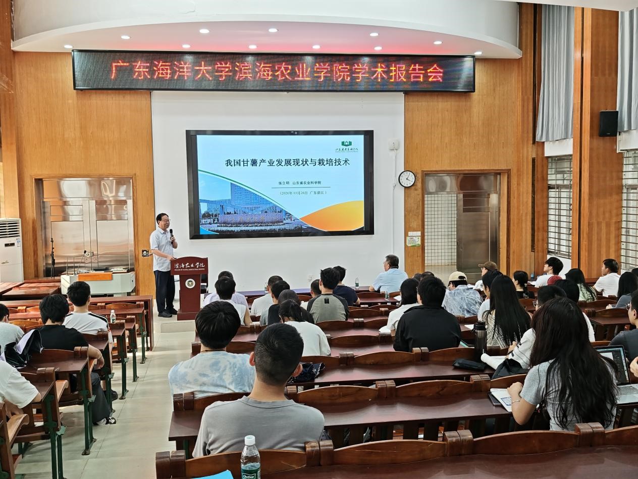 3月26日下午,滨海农业学院在湖光校区兴农楼109室举办《我国甘薯产业发展现状与栽培技术》学术报告会。山东省农业科学院二级研究员张立明受邀进行主讲,学院党委书记郑殿峰教授主持活动,80余名师生到场聆听交流。