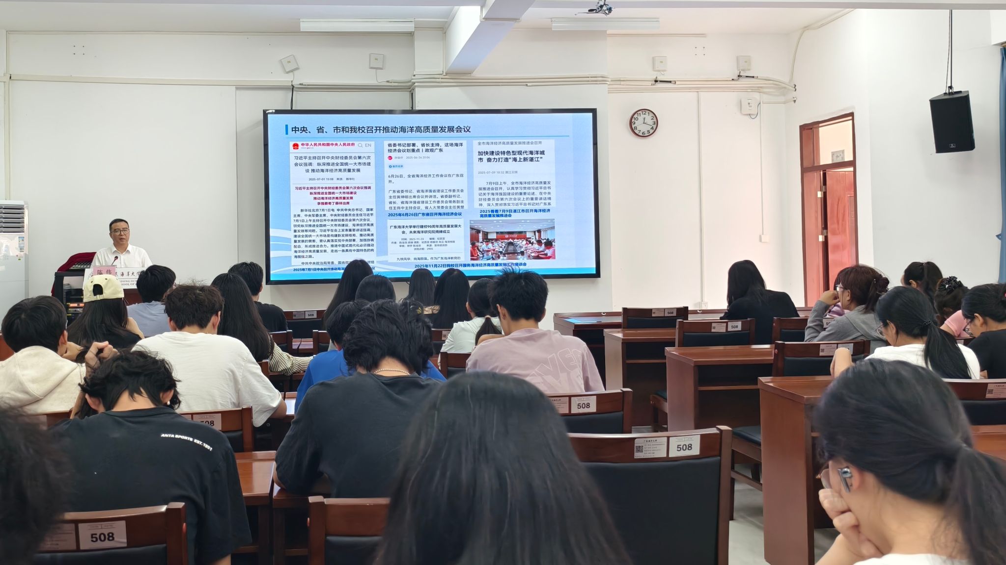 为深入学习贯彻习近平总书记关于海洋强国建设的重要论述,引导青年学生深刻认识海洋经济高质量发展的时代使命,4月7日下午,经济学院院长陈伟以《向海图强:理论学习与实践探索》为主题,在博文楼C座508报告厅为学院本科生讲授“思政第一课”。