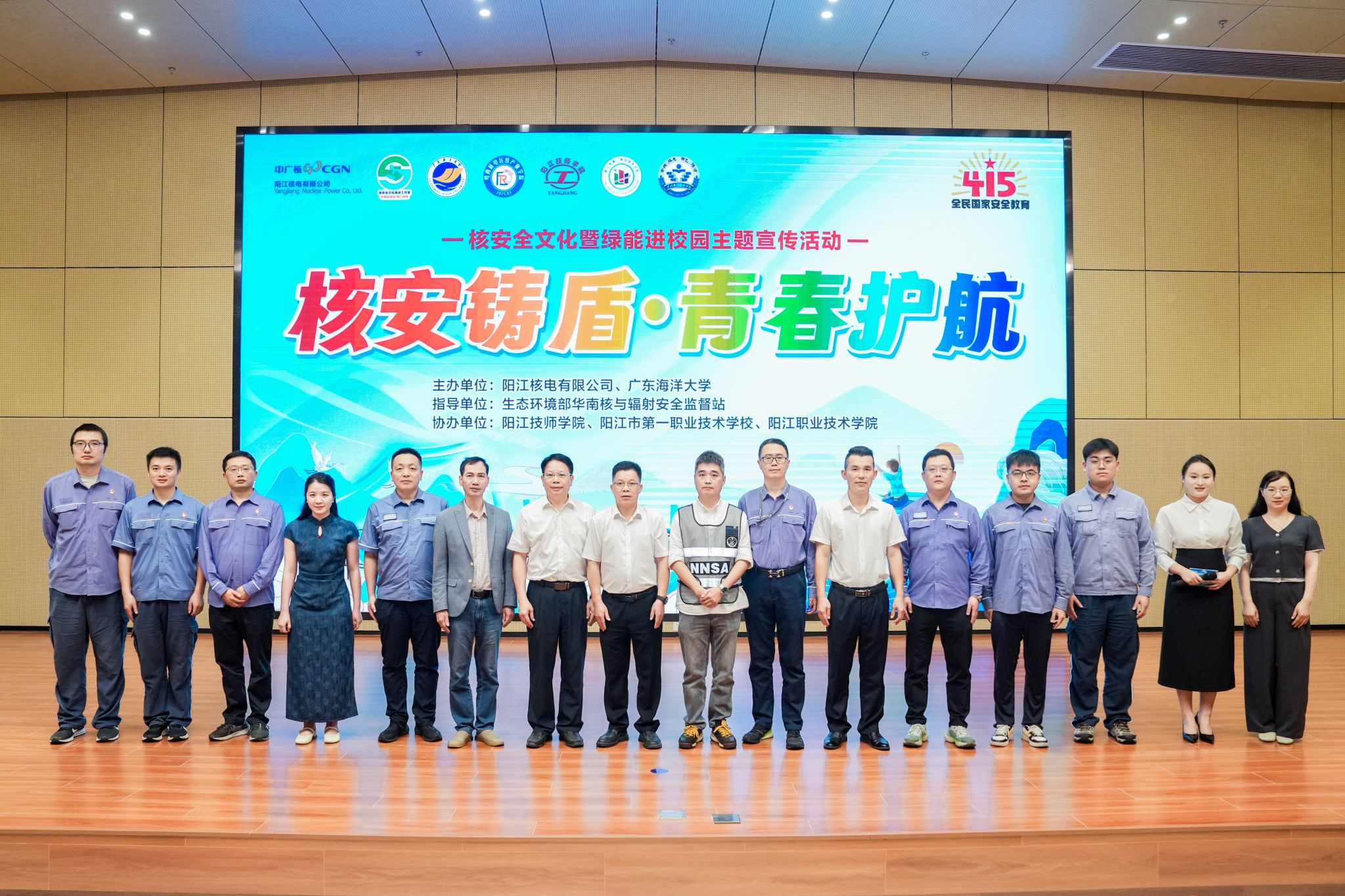 4月8日,在“4·15”全民国家安全教育日来临之际,阳江校区联合阳江核电有限公司举办“核安铸盾·青春护航——核安全文化暨绿能进校园”主题宣传活动。生态环境部华南核与辐射安全监督站副处长周融冰、阳江核电有限公司副总工程师李辉、阳江校区党委副书记丁永成、阳江技师学院(阳江市第一职业技术学校)副校长洪海、阳江职业技术学院机电系党总支书记黄礼万、阳江校区相关部门负责人及师生代表等300余人参加活动。