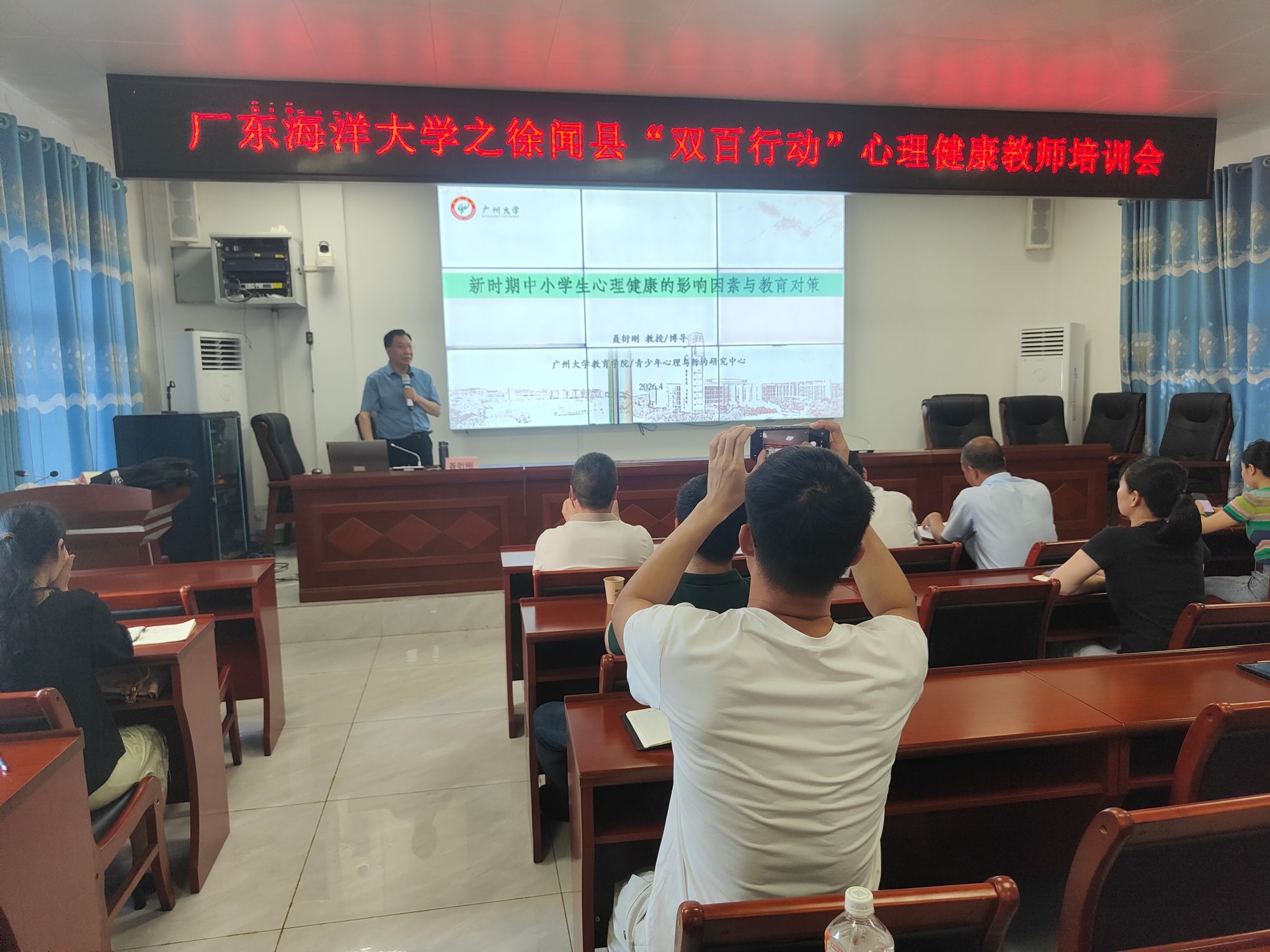 4月10日,我校“双百行动”心理服务团队邀请广州大学聂衍刚教授,先后赴雷州市、徐闻县开展“双百行动”心理健康教师培训活动。在雷州帮扶队和徐闻帮扶队的大力支持下,两地教育局分别组织了雷州市、徐闻县专场活动,200余名中小学心理健康教师参加。