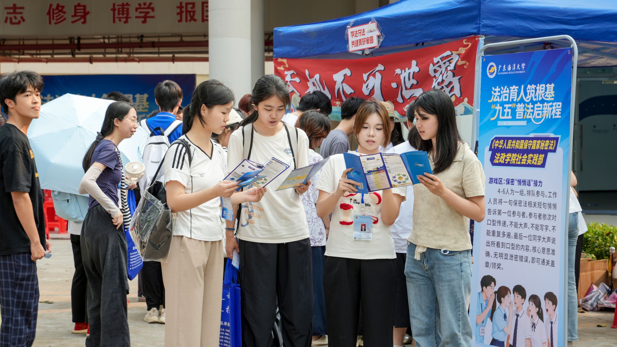 4月15日,时值第十一个全民国家安全教育日,学校在湖光校区西区学生活动中心举办第二届校园法治文化节暨法治文化游园会活动。活动以“法治育人筑根基,‘九五’普法启新程”为主题。学校党政办公室、宣传统战部、学生工作部、保卫部、教育工会、校团委、法政学院等相关负责人,湛江海关缉私局、湛江海警局、湛江市国家安全人民防线建设工作小组、麻章区委办公室、麻章区委政法委、麻章区司法局、湛江市公安局麻章区分局、麻章区湖光镇禁毒办等单位相关人员,以及500余名师生代表齐聚一堂,共同参加活动。