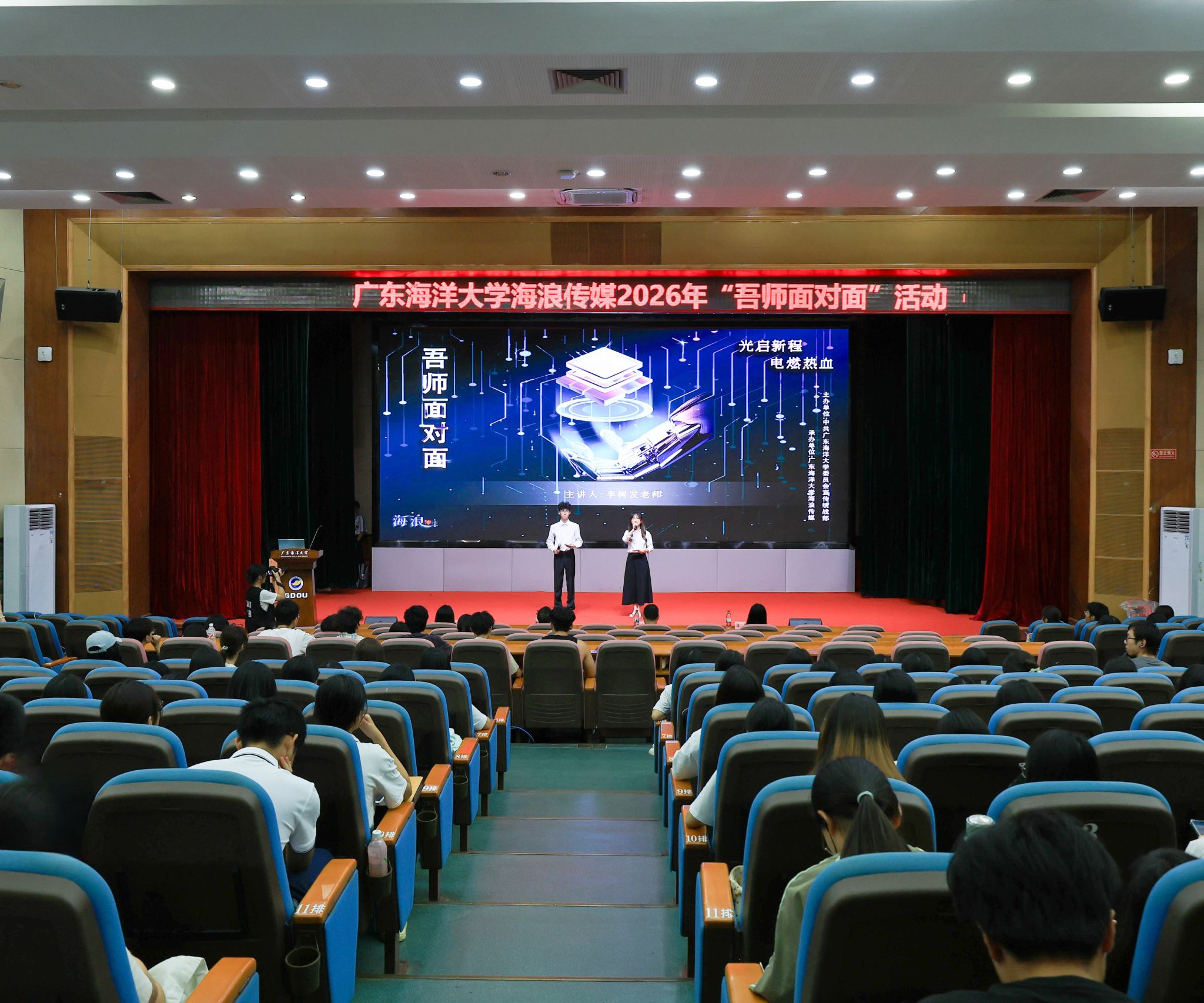 4月15日晚,由学校宣传统战部主办,电子与信息工程学院、海浪传媒承办的2026年“吾师面对面”活动在湖光校区广学楼多功能厅举办。本次活动以“光启新程,电燃热血”为主题,邀请了学校光电技术创新团队指导老师、电子与信息工程学院副教授李树发作交流分享,宣传统战部副部长樊云霞、学生工作部副部长孙国恩及全校300多名学生参加活动。