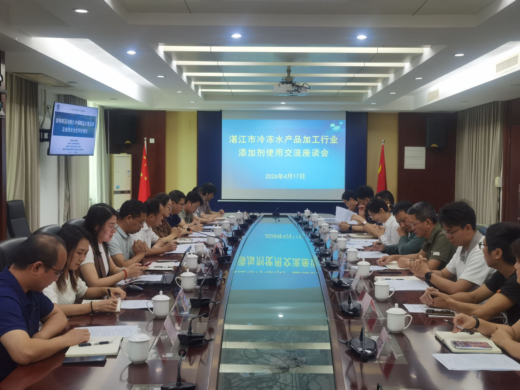4月17日,湛江市市场监督管理局组织召开湛江市冷冻水产品加工行业添加剂使用交流座谈会。食品科技学院院长刘书成教授受邀参加会议并作交流发言。会议还特别邀请了中国水产科学研究院黄海水产研究所王联珠研究员及其团队成员姚琳、郭莹莹,以及部分企业代表共同参与座谈。