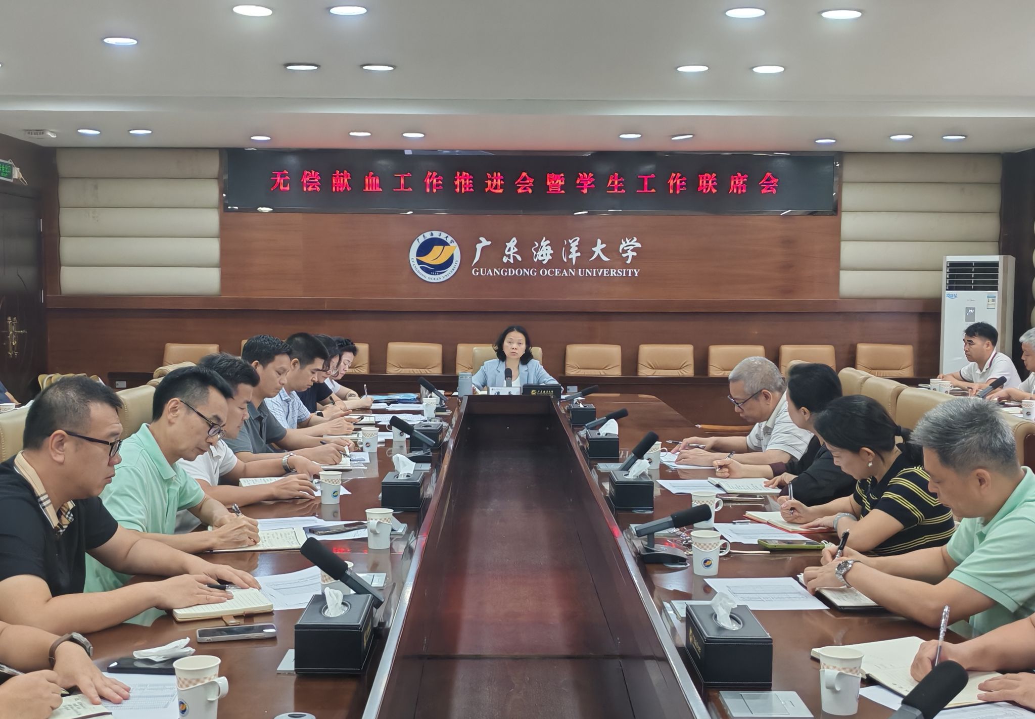 4月28日,学校在湖光校区行政楼五楼会议室召开无偿献血工作推进会暨学生工作联席会。会议由学校党委副书记谭平主持,宣传统战部、学生工作部、保卫部、教务部、后勤保障部、校团委和阳江校区学生事务部等职能部门负责人、各学院分管学生工作领导参加会议。