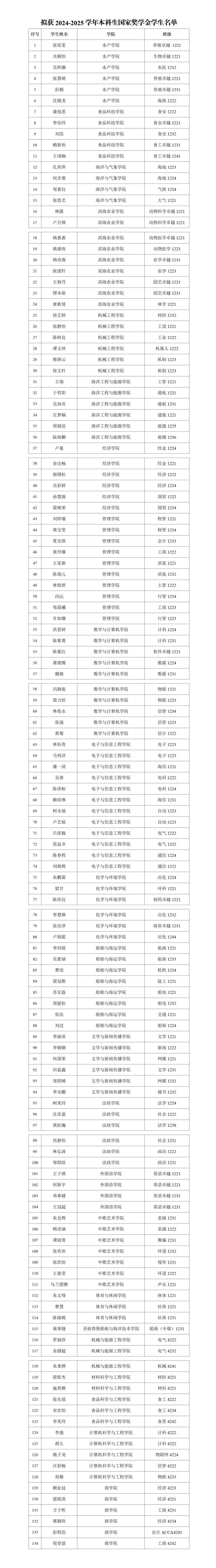 关于对拟获2024-2025学年本科生国家奖学金学生名单的公示