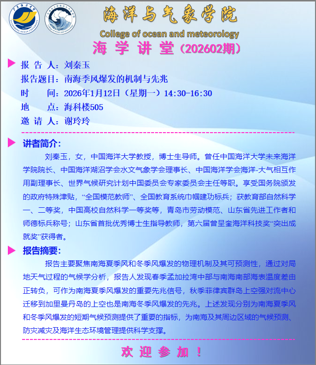 下一篇:海洋与气象学院“海学讲堂”(202601期)