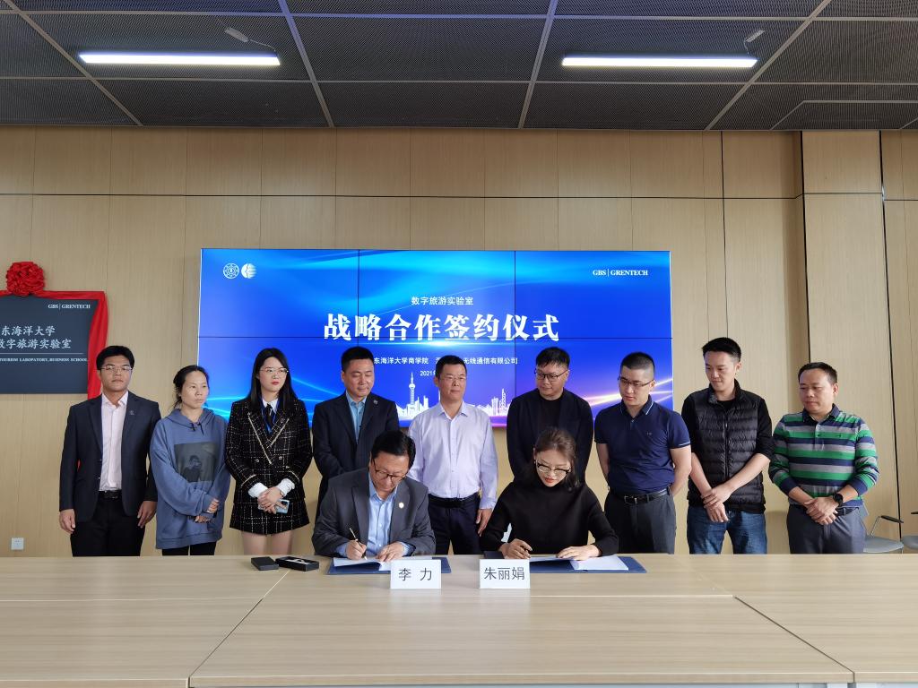 2021年11月11日,广东海洋大学商学院与深圳国人无线通信有限公司校企合作框架协议签约及广东海洋大学商学院国人数字旅游联合实验室揭牌仪式在广东海洋大学济航楼举行。华南理工大学教授、广东海洋大学商学院负责人、广东海洋大学数字研究中心主任李力和深圳国人无线通信有限公司企业与家庭中心总经理朱丽娟代表双方签署校企合作协议。广东海洋大学阳江校区教研部夏杏洲部长、广东海洋大学数字旅游研究中心和广东海洋大学商学院师生代表及深圳国人无线通信有限公司高层一行出席活动并见证签约仪式。