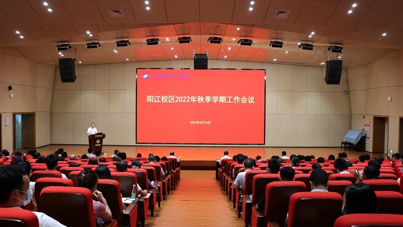 8月26日下午,阳江校区在海纳楼113会议室召开2022年秋季学期工作会议,总结校区今年春季学期工作并部署秋季学期工作。校长潘新祥同志,副校长、阳江校区党委书记、管委会主任宁凌同志,以及阳江校区全体教职工。会议由校区党委副书记、管委会常务副主任周昌仕主持。校区教学科研部负责人夏杏洲同志部署新学期开学之初的教学工作。周昌仕介绍了阳江校区二期建设进展情况,并回顾了校区暑期开展的工作。在暑期,阳江校区完成了202...