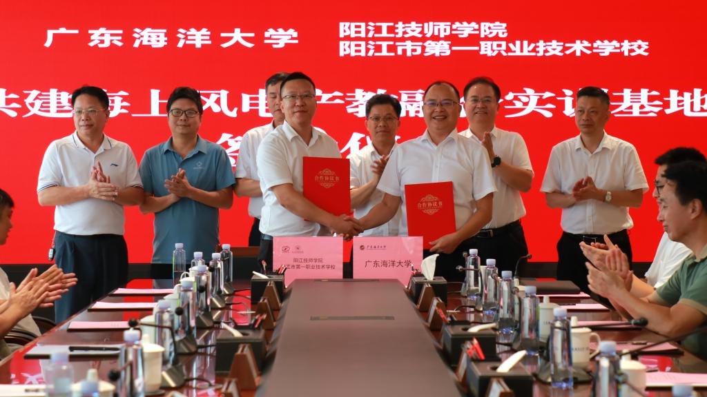 7月4日下午,我校与阳江技师学院、阳江市第一职业技术学校共建海上风电产教融合实训基地签约仪式在校区海纳楼712会议室举行。党委常委、副校长、阳江校区党委书记、校区管理办公室主任周昌仕与阳江技师学院院长、阳江市第一职业技术学校校长林进杰分别代表两校签约,阳江校区党委副书记丁永成、陈永强,以及阳江技师学院、阳江市第一职业技术学校党委书记谭志葆,副院长陈志军、洪海等领导参与见证。海上风电产教融合实训基地的...