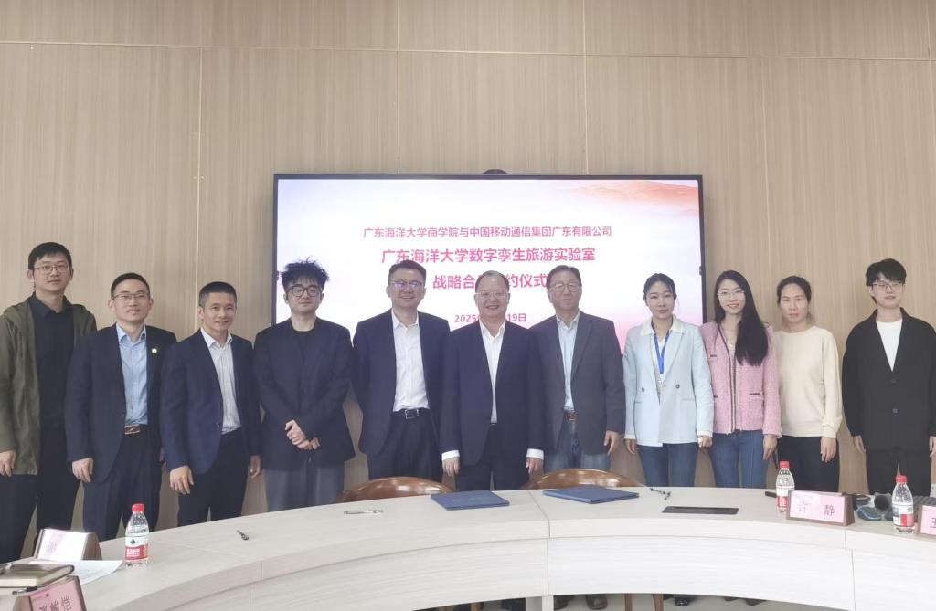 12月19日,广东海洋大学移动数字孪生旅游实验室战略合作签约仪式在阳江校区济航楼203室举行。学校党委常委、副校长周昌仕,商学院院长李力、副院长张欢、移动数字孪生旅游实验室负责人白卫静、问途数字营销实验室负责人王佳和中国移动集团广东有限公司行业首席专家张峻恺、阳江分公司总经理周宁、副总经理许志海、战略客户中心副总经理梁东、战略客户中心农商文旅事业部总监等,合作双方代表参加了本次签约活动。活动中,李力教...