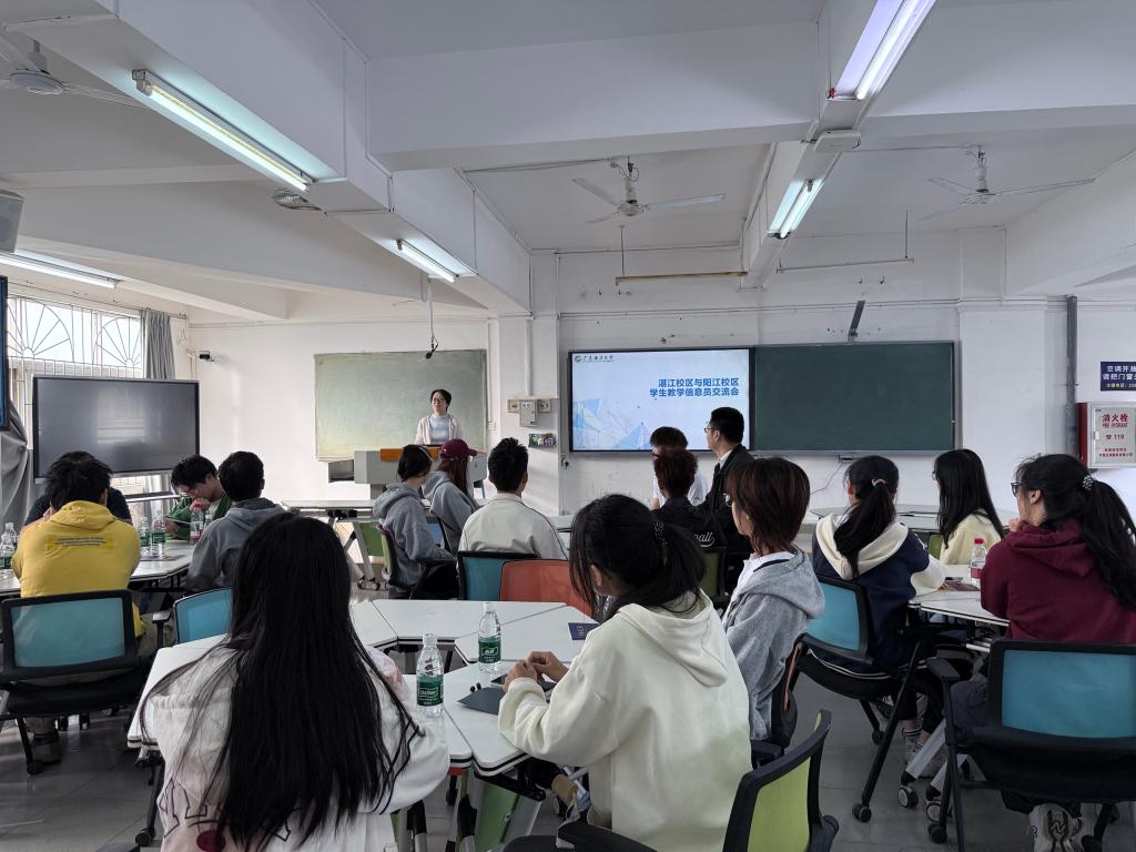 教学信息员专题交流会于当天上午在湖光校区广学楼703室召开。会议伊始,教务部徐艳斌老师首先对阳江校区一行的到来表示热烈欢迎,并说明两校区教学信息员队伍加强联动、互学互鉴的重要意义,随后围绕教学信息员的核心职责与学年考核体系进行了系统讲解,从信息采集、内容反馈、流程规范等关键环节入手,结合案例剖析,为阳江校区信息员提供了清晰、务实的工作指导。之后湖光校区教学信息员各职能部门负责人依次分享了在队伍建设、日常管理、活动策划及内部协同等方面的成熟经验。