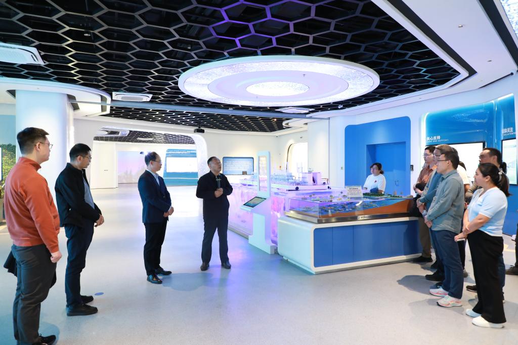 上午,调研团队抵达湛江湾实验室。作为省级重点实验室,湛江湾实验室在党建引领科研攻关、人才队伍建设等方面成果显著。实验室副主任洪鹏志带领调研组一行实地参观了实验室展示厅,详细介绍了实验室的发展历程、领军人才、科研方向、海洋牧场建设等情况。双方就如何发挥各自优势,以问题为导向,挖掘合作方向等进行了交流,重点探讨了在材料科学领域与实验室开展产学研合作的可能性。