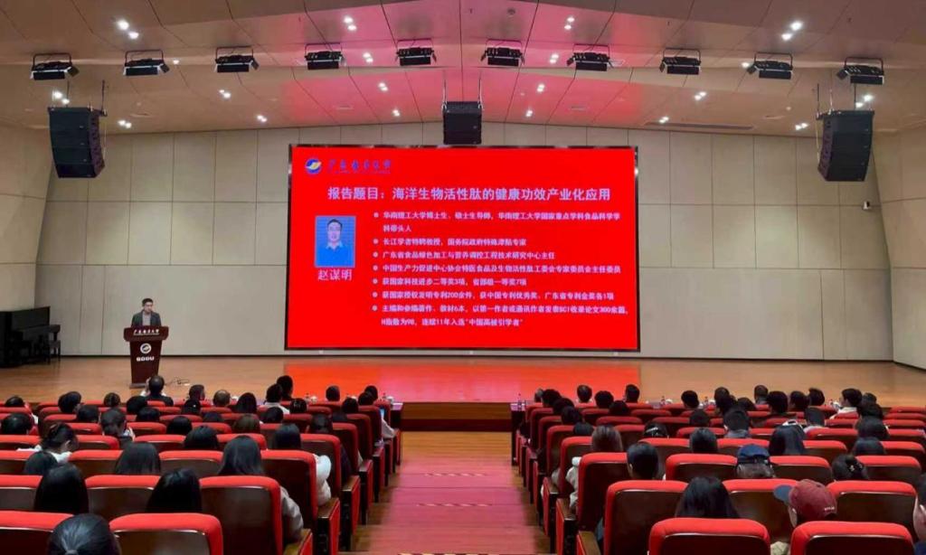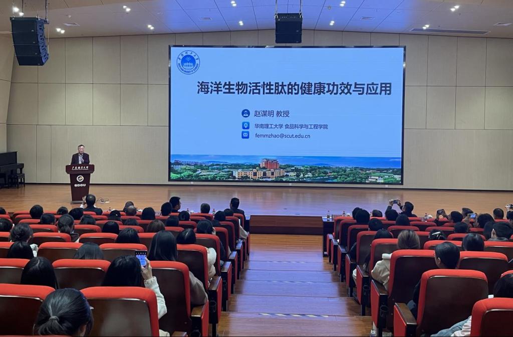 讲座中,赵谋明教授立足我国人口老龄化趋势与慢性代谢疾病高发的现实背景,高屋建瓴地剖析了健康食品产业向“精准营养干预”转型的发展方向。他重点介绍了海洋生物活性肽在改善记忆、降低尿酸等方面的健康功能,并分享了其团队在海洋鱼活性肽高效制备技术、功效机制验证(涵盖细胞、动物及临床实验)以及产业化应用方面的最新研究成果,为海洋生物资源的高值化利用提供宝贵“科研示范”,也为大健康产业的创新发展注入强劲“科技动能”。