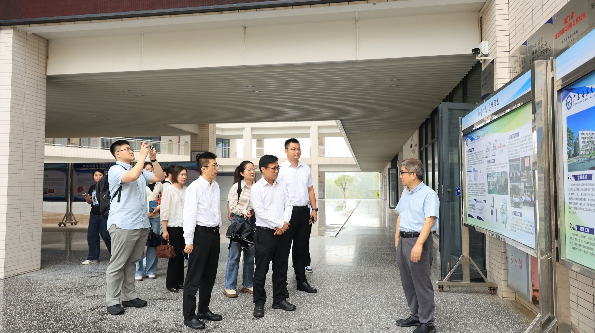 程国就一行实地走访校区食品科学与工程学院果蔬加工生产线、精酿啤酒生产线、精密仪器实验室、食品物理加工实验室等科研与实训平台,详细了解平台建设、科研攻关、成果转化及服务地方产业等情况。实地调研后,双方在海纳楼712会议室召开座谈会。