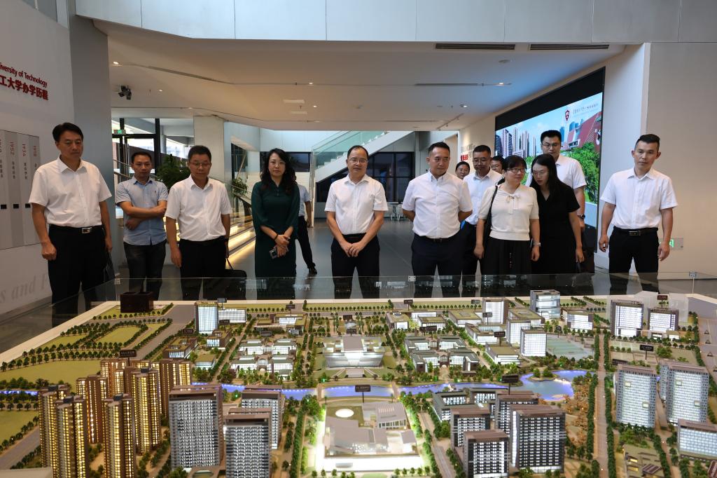 10月15日下午,调研组首先抵达华南理工大学广州国际校区。在华南理工大学广州国际校区党委副书记陈翠峰的陪同下,调研组详细了解了广州国际校区规划沙盘,参观了智能制造微工厂、人工智能与机器人实验室、图书馆红色文化展示区、峻德书院学生社区等场所。随后,双方在会议室进行座谈交流。会上,陈翠峰介绍了广州国际校区的基本情况,双方就校区运行机制、校地协同、学生管理等方面进行了深入交流与探讨。