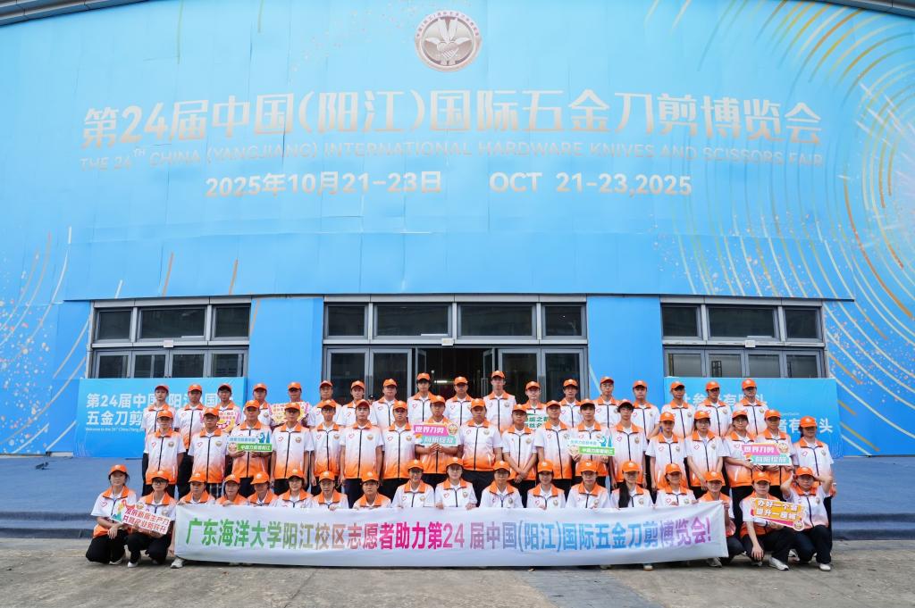 10月21日至23日,第24届中国(阳江)国际五金刀剪博览会(简称“刀博会”)在阳江国际会展中心举行。作为扎根阳江、服务地方发展的重要力量,广东海洋大学阳江校区积极响应展会需求,选派160名青年志愿者在各学院团学负责老师的统筹带领下,奔赴会场开展志愿服务工作,以青春之力为这场国际盛会注入“海大温度”。