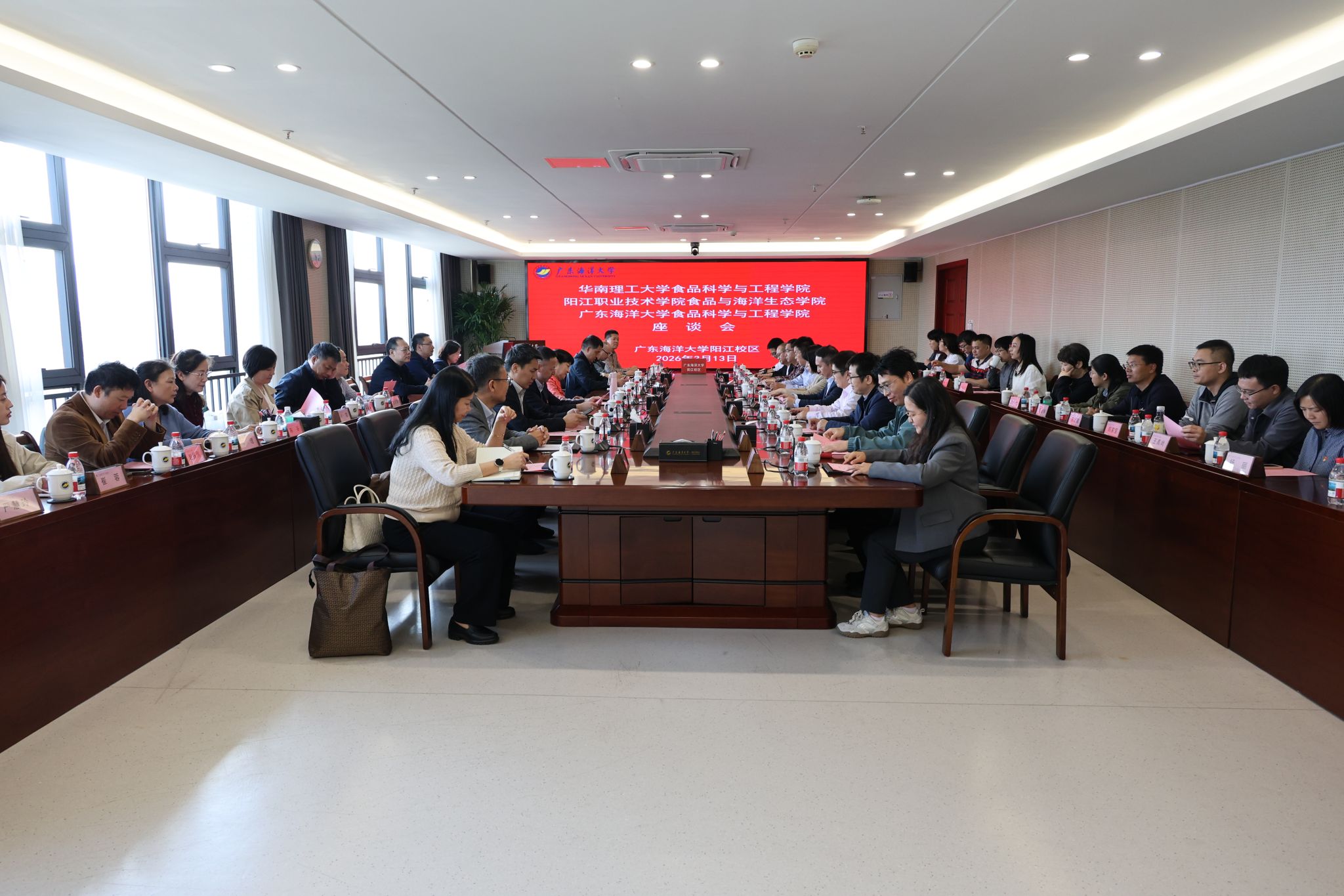 3月13日下午,华南理工大学食品科学与工程学院党委书记冯向阳、院长黄强带领学院30多位专家、教师莅临广东海洋大学阳江校区调研交流。阳江市人民政府副秘书长黄怡,阳江职业技术学院副院长刘和平、党委组织部部长曾取、食品与海洋生态学院院长梁启用等应邀出席。校区党委副书记麦冬宁,食品科学与工程学院党委书记夏杏洲、院长朱思明等陪同调研。