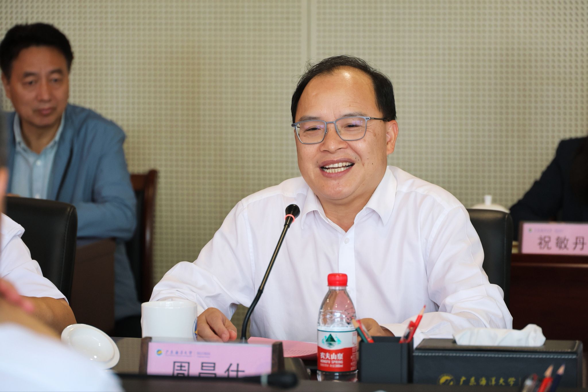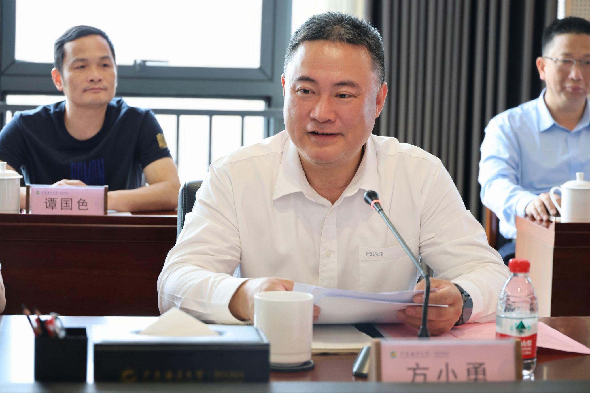 周昌仕对市公安局的关心与支持表示感谢,指出校区发展离不开地方政府和公安部门的保驾护航,此次调研为校区发展带来宝贵合作机遇。他表示,校区将全力落实校警合作工作,联合多部门与公安做好对接,各单位树立服务意识,做好各项保障准备,充分发挥校区及校本部的学科、人才优势,在食品安全检测、公安人才培训等方面对接阳江发展需求,以服务地方践行初心使命,以更深层次的资源融合,共同筑牢校园安全防线、服务地方高质量发展。