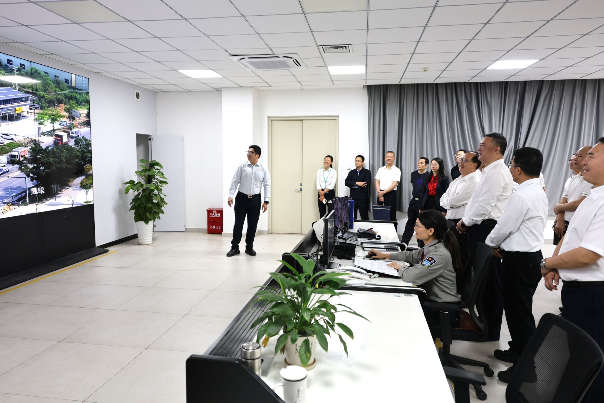 在监控室调研